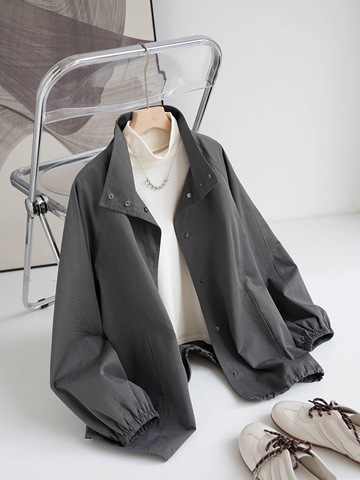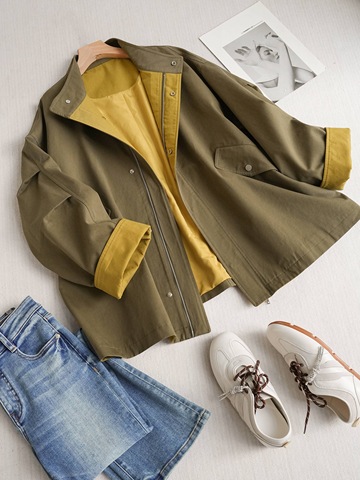 Женский хлопковый плащ средней длины с воротником-стойкой