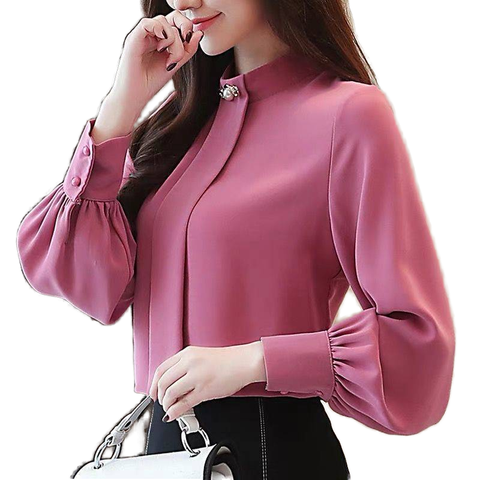Женская офисная блузка больших размеров Элегантная с длинным рукавом-фонариком дышащая шифоновая однотонная с узором для весеннего сезона
