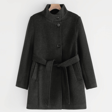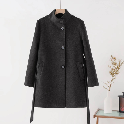 Женский тренчкот средней длины в Корейском стиле с воротником-стойкой и поясом на весну