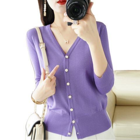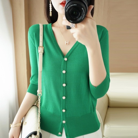 Женский элегантный кардиган с V-образным вырезом и длинными рукавами, оптовая продажа, свободные вязаные топы для осенне-весеннего трикотажа