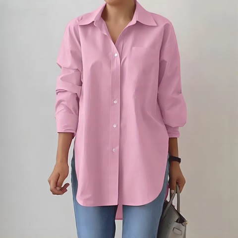 Женская Однотонная рубашка с разрезом и длинным рукавом, рабочая одежда оверсайз для весны, с воротником-стойкой, пуговицами, однотонная, для офисных дам